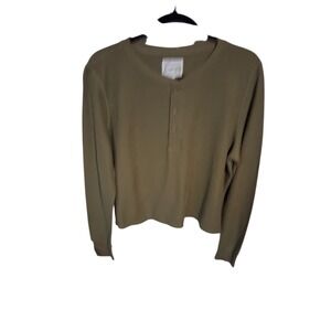 Tecovas Western Women's size Large Double Slub Goblincore Cropped Henley Shirt Cowgirl Casual Alternative Skater Loungewear Athleisure Texas