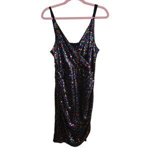 Grace Karin Rainbow Sequin Ruched Party Bodycon Dress NYE Size L