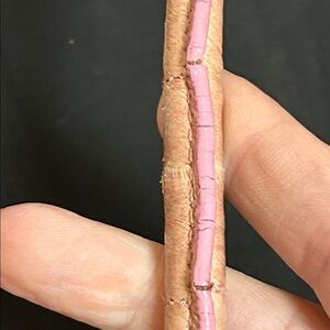 In gentle used condition. Handles have some cracks in the edges, see pictures for condition. Inside has normal wear and light marks. Zoom in on pictures to see over all condition. Really unique bag, hard to find style and color.