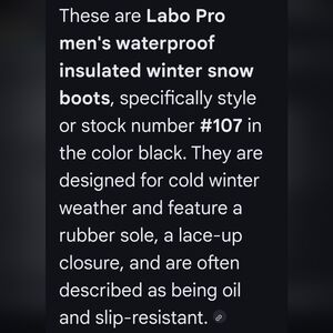 NWT Labo Pro waterproof boots in black. Perfect for cold weather.