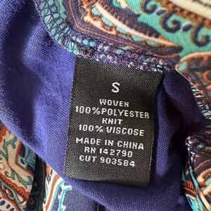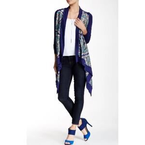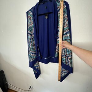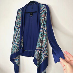 Vertigo Satin High Low Paisley Royal Blue Orange Long Sleeve Drape Cardigan S