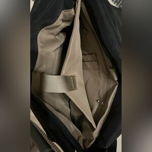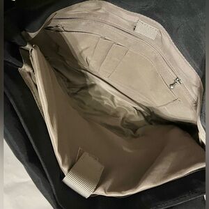 The perfect ‘carry all’ courier bag featuring two front fold over flaps that serve as oversized pockets with a secure zipper closure, a fully padded interior slip pocket for electronic devices, two additional interior zipper pockets, pen holders and a large pocket on the back with a magnetic closure. Made with Lightweight water resistant nylon fabric.