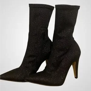 Giampaolo Viozzi ankle boot Luxe metallic black glitter sock boots NWOB size 7.5