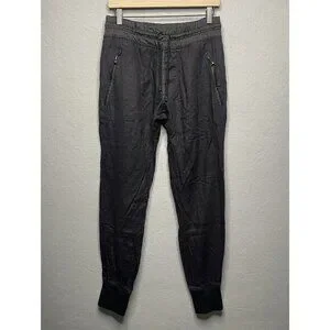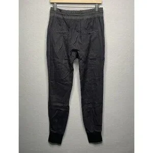 Zara Man Linen Jogger Pants With Ribbed Cuffs M Black