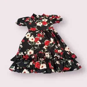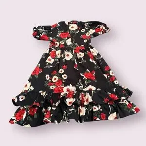 Girls Red And Black Dream Floral Dress with Ruffle Accents And Cut Out Sz 4