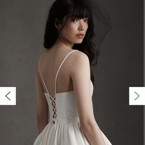 Chic mini dress by Watters. Features spaghetti straps and a fitted bodice. Flared bubble skirt adds elegance. I wore this for my elopement wedding in Vegas and to Magic Castle in LA. if you want the faux fur wrap along with the dress I'm happy to throw it in for free. Selling as it doesn't fit me anymore and I don't have space to keep it.