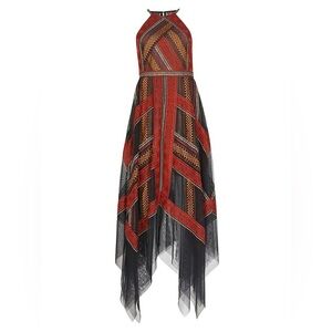 BCBGMAXAZRIA Embroidered Handkerchief Tulle Formal Lace Maxi Dress Valentine 0