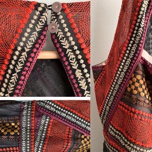 The striking embroidered design and high-low hem create a dynamic silhouette, perfect for making a statement at any event.