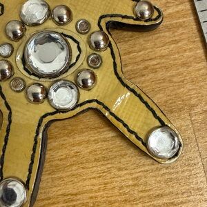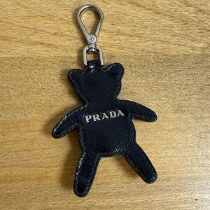 Prada saffiano leather bear bag charm keychain with crystal accents