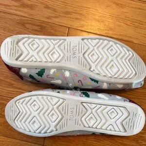 Charming holiday slippers with playful candy cane and tree design. Soft and warm interior.