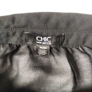 This lovely black sleeveless top is perfect for any occasion. Its sleek design offers a sophisticated look. Ideal for pairing with your favorite accessories. Fully lined, outer layer is sheer.