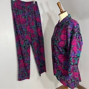 Vintage Justin Thyme Floral Co ord Set Colorful Pantsuit Spring Two Piece Set