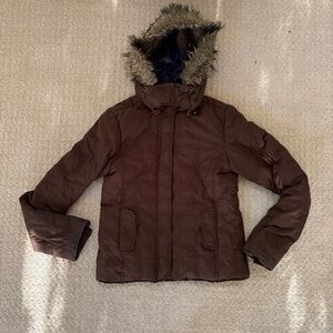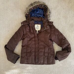 Abercrombie & Fitch Brown Hooded Puffer Jacket with Faux Fur Trim