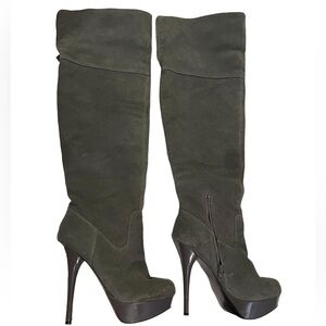 Steve Madden Boots ‘Calgarry’ Vintage Grey Suede Over-the-Knee Platforms - EUC