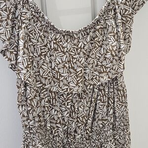 NWOT Old Navy On or Off the Shoulder Smocked Blouse Brown and Cream Large. The blouse features cinched waist. Super cute blouse 👚 you can dress up or dress down! Very cute with jeans or pants! New Never worn but does not have tags. Lightweight and flowy