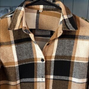 Plaid Button-Up Shirt in Brown and Black