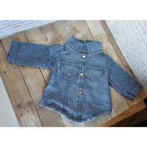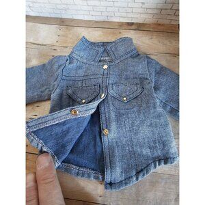 Stylish, well-made outfit for 18-inch dolls featuring a classic denim-look jacket paired with bold patterned leggings.