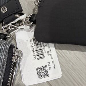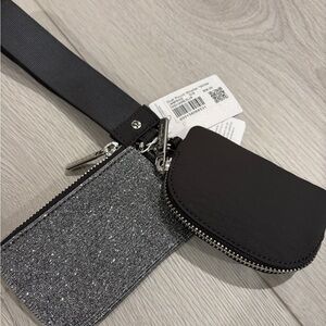 New. Dark silver/ graphite grey glitter dual pouch wristlet. Silver hardware.