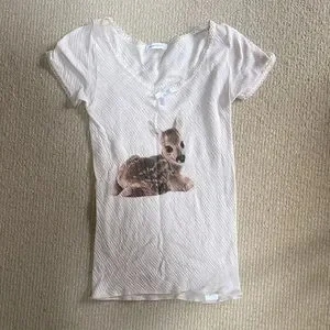 As seen on Bella Hadid. Adorable beige tee featuring a deer graphic. Perfect addition to your wardrobe. Like new- worn one time.