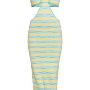 TURQUOISE CONTRAST TEXTURED KNIT CUT OUT HALTERNECK MAXI DRESS Size Medium