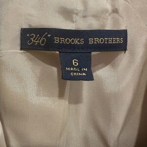 Experience the refined elegance of the Brooks Brothers tan blazer, designed with a tailored fit and crafted from fully-lined lightweight fabric. Perfect for business-casual settings, this blazer combines comfort with a classic lapel for a timeless look. Its minimalistic design ensures versatility and sophistication in any wardrobe. Can be paired with swim for an evening out and with a pencil skirt for a business meeting.