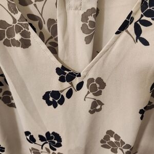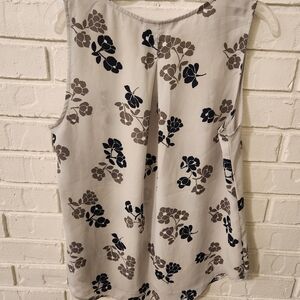 Elevate your wardrobe with this chic floral sleeveless top. Featuring a stylish navy and gray floral pattern on a light gray background, this top is perfect for any occasion.