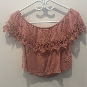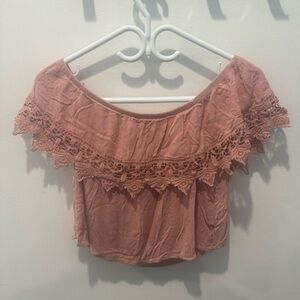 Streetwear Society Pink Women's Lace Trim Off-Shoulder Top