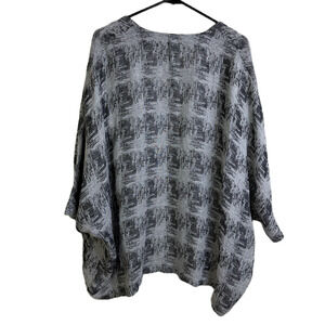 Yushi Linen Jacket Womens Medium Silver Black Open Front Lightweight Top