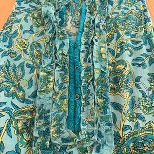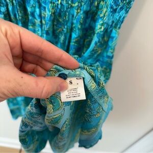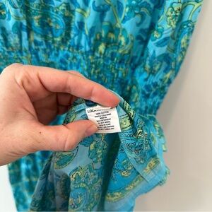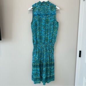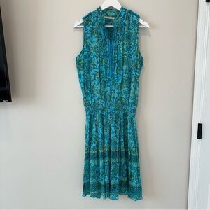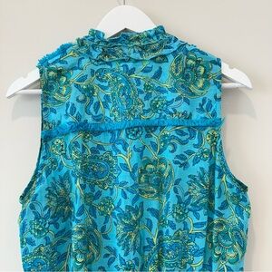Lola Australia Cotton Floral Dress Sleeveless Summer Teal Mini V Neck Resortwear