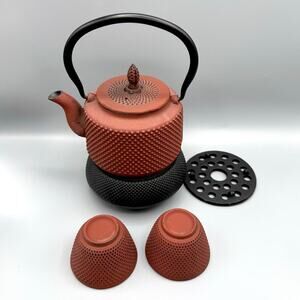 VTG Japanese Teapot Red Cast Iron 2.5c Dobin Strainer Two Cups Brazier NEW