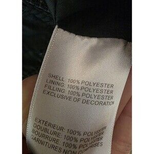 Good pre-owned condition jacket. Two buttons are missing on the hood, one is intact. Some pilling on parts of the quilting. See all photos.