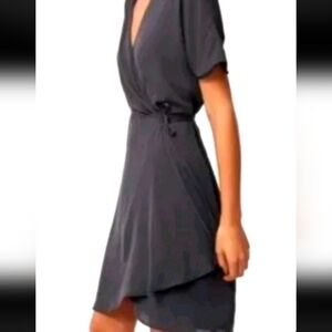It's a short, flowy wrap dress with a deep-V neckline cut from silky fabric that drapes beautifully.