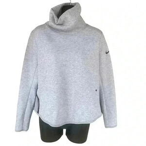 NIKE WOMENS DRI FIT CROP ROLL NECK SWEATSHIRT front pockets sz small color Grey