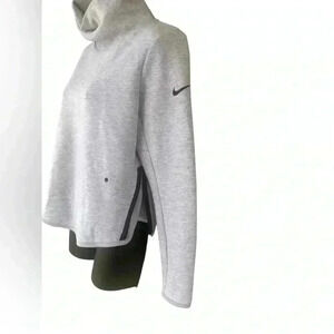 NIKE WOMENS DRI FIT CROP ROLL NECK SWEATSHIRT front pockets sz small color Grey with black used in excellent condition