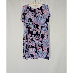 MSK Dress 2X Women's Blue Paisley Short Sleeve Jersey Tshirt Scoop Neck Casual