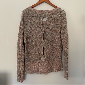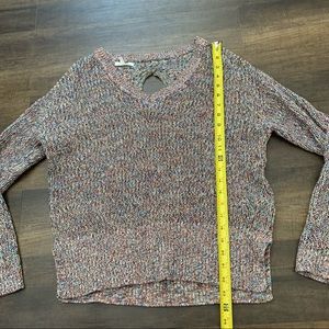 Multicolor sweater from Maurices. Sweater has a braided pattern in back leaving open holes along the spine. Thick knit material. Stretchy. Excellent used condition EUC