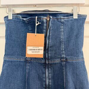 NWT Reformation Jeans Eugenia Denim Strapless Midi Dress Simcoe Blue Women's 2