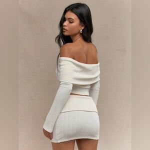 MISSGUIDED Cable Knit Off The Shoulder Long Sleeve Two Piece Set