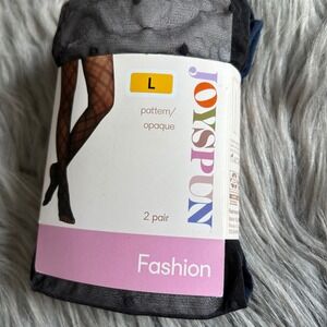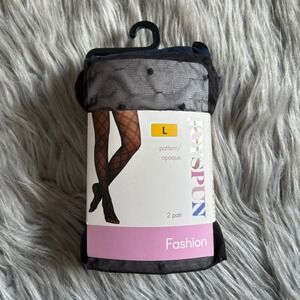 Joyspun High Waist Opaque Tights Womens Size Large Blue And Black Polka Dot