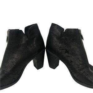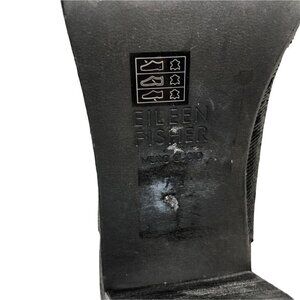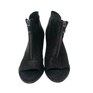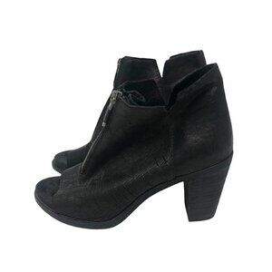 Eileen Fisher Womens Ankle Booties Black Leather Block Heel Peep Toe Zip 7.5