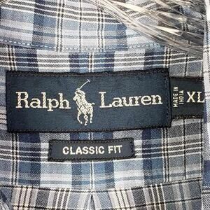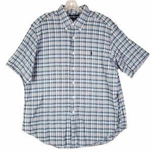 Polo Ralph Lauren Shirt Oxford Mens Size XL Short Sleeve Blue Plaid Button Down