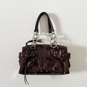 ‼️ stain on inside bottom, some wear/crinkle and minor scratches to outiside, string undone by zipper, Franco Sarto bag