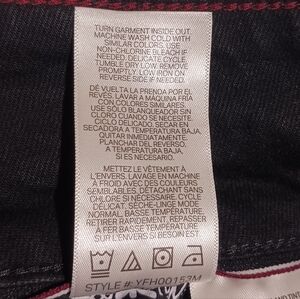 •Front pockets; back welt pockets (stitched closed so possibly false pockets)