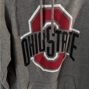Stay warm and stylish with this Ohio State gray hoodie, kangaroo pocket, and distressed graphic. Ideal for casual outings and supporting your team. NEVER WORN, without tags. This can be a Unisex item! Was sold by TORRID so sizing tag says 0=Large. It runs M/L oversized depending on your size preference.
