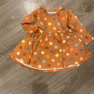 Adorable long sleeve dress with colorful polka dots. Perfect for playful days. No size tag, comparable to a 2T