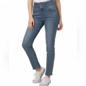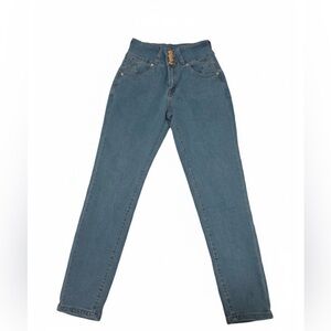 Elevate your style with these high-waisted blue jeans. Perfect for any occasion, they offer both comfort and a flattering fit.