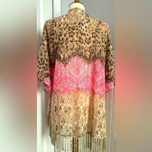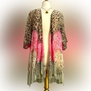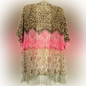 Like new! Beautiful flowy top with tassels. Size of top was removed from tag, but open & flowy. Likely a size XL, or even One Size Fits All. Necklace NOT included. Material shown in picture. Cute & versatile piece. A closet staple. Very comfy. Smoke/pet free home. Adorable. A MUST HAVE!!
