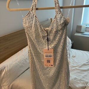 NWT NEVER WORN Oh Polly Amolika embellished halterneck mini dress in white/silver