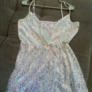 Dazzle in the Shimmer Lights Strapless Sequin Dress. This stunning dress features a blend of sparkling colors, perfect for a bachelorette party!