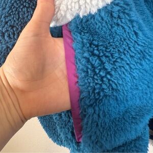 Stoic Teal Cream Colorblock High Pile Fleece Jacket Womens L Gorpcore Cozycore